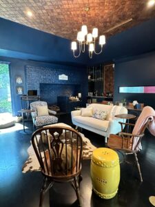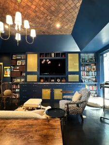 Ken Fulk’s design influence is evident in the library’s cozy opulence—subtle but profound. Inspired by the warm, rich tones and the thoughtful organization, I returned home determined to recreate that ambiance—a blend of relaxation and productivity. Our office now mirrors some of the library’s best elements: an organized book wall in a deep navy, sleek tables, cozy seating and soft, ambient lighting that creates an atmosphere for creativity.